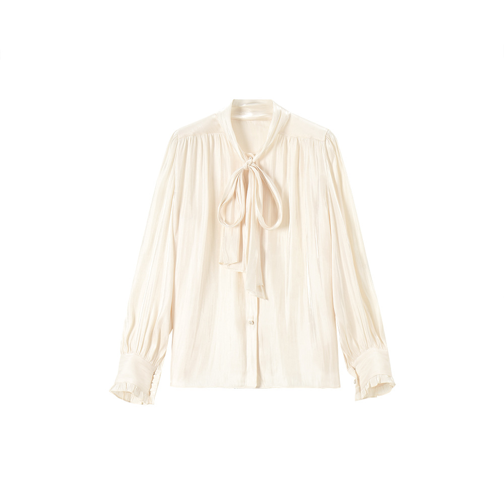 25新品早秋新法式浪漫优雅光泽感飘带系带通勤休闲气质衬衫上衣女
