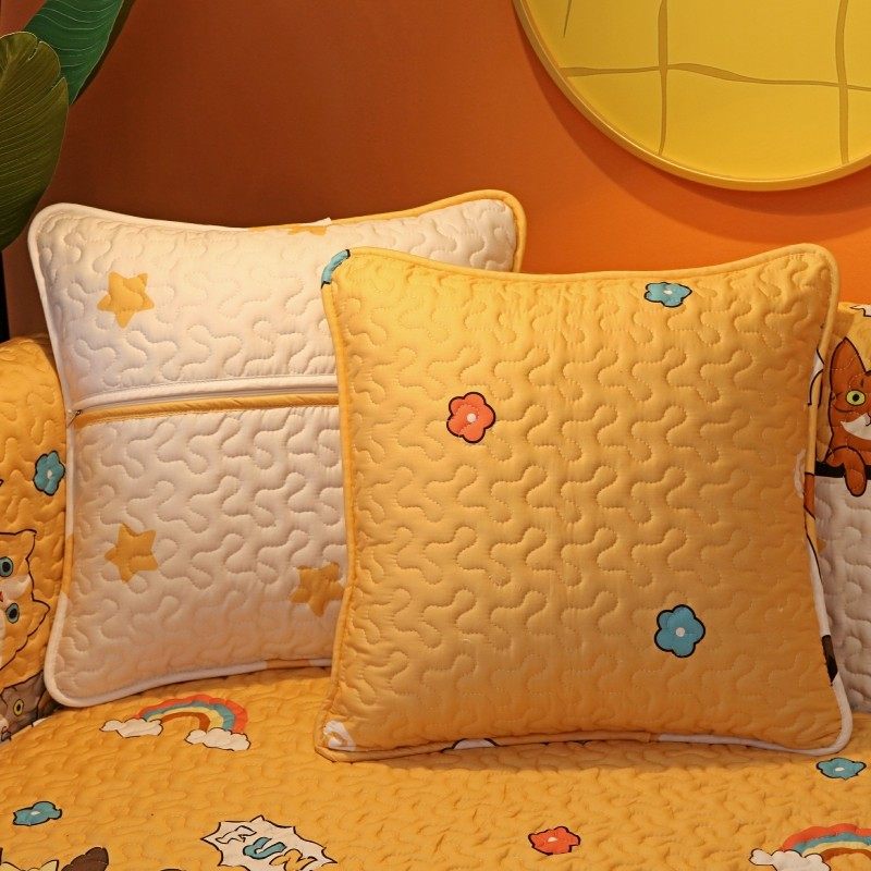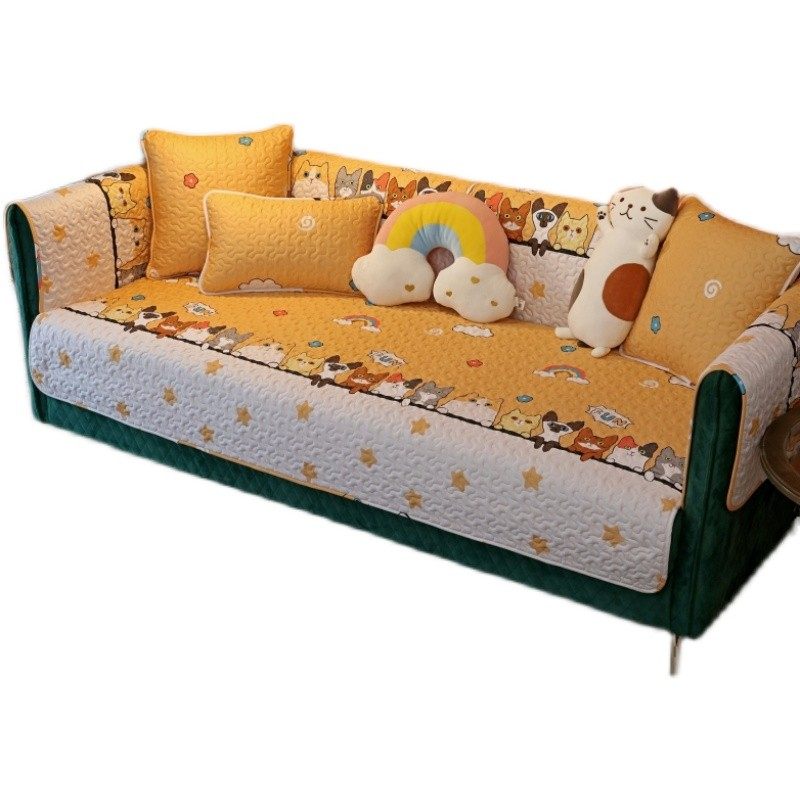 纯棉面料沙发垫四季通用卡通简约动漫全棉绗修布艺斜纹靠背巾防滑