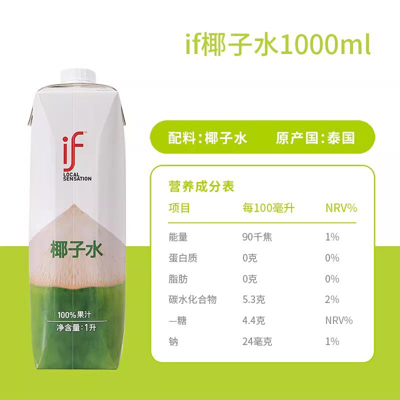 IF泰国进口100%纯椰子水1L