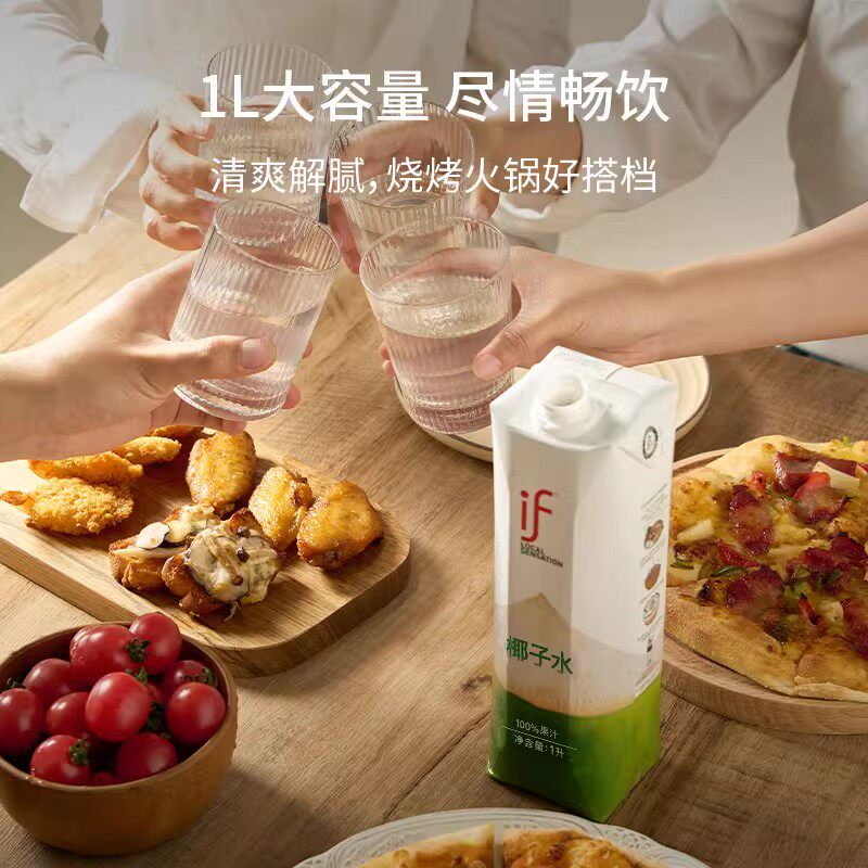 IF泰国进口100%纯椰子水1升*4瓶新鲜椰青水聚餐出游运动果汁饮料