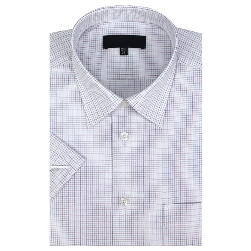 夏季纯棉免烫男士高档白底紫格短袖衬衫 男士商务绅士半袖衬衣