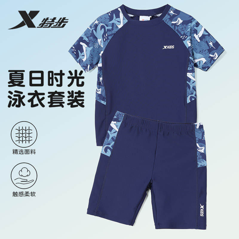 特步儿童新品泳衣男童2025新款分体五分裤海边度假泡温泉泳装泳衣