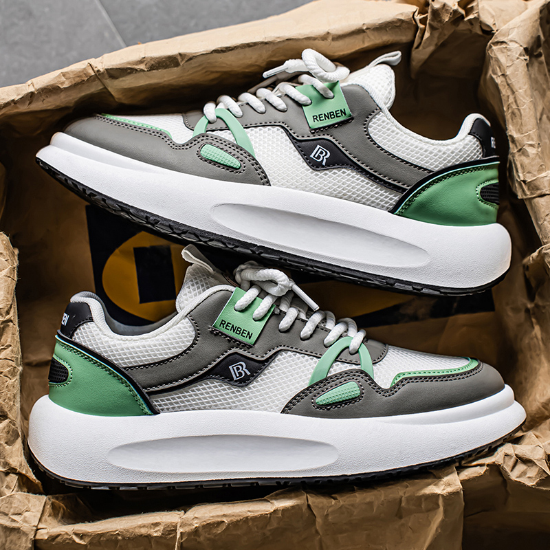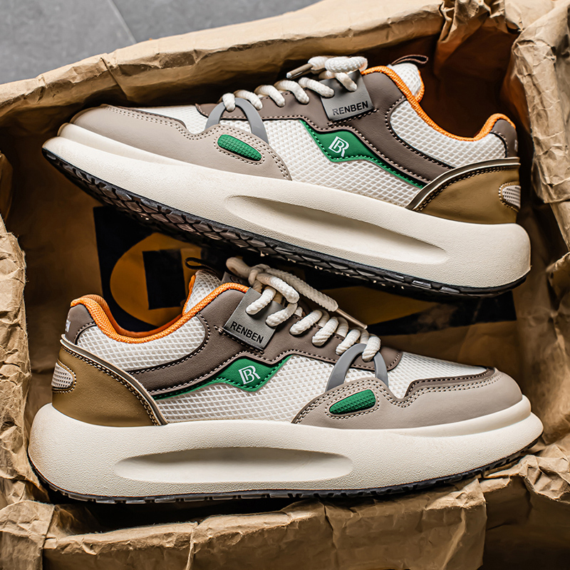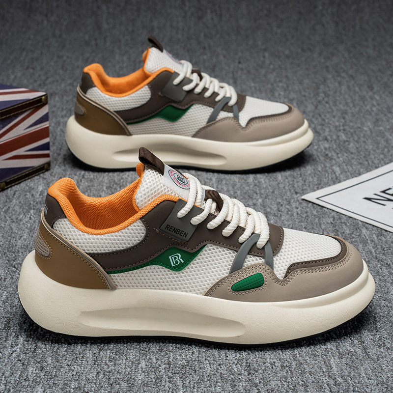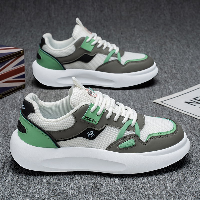 人本官方2025春夏新款网面透气百搭厚底国风男鞋小白鞋休闲鞋增高