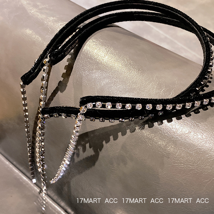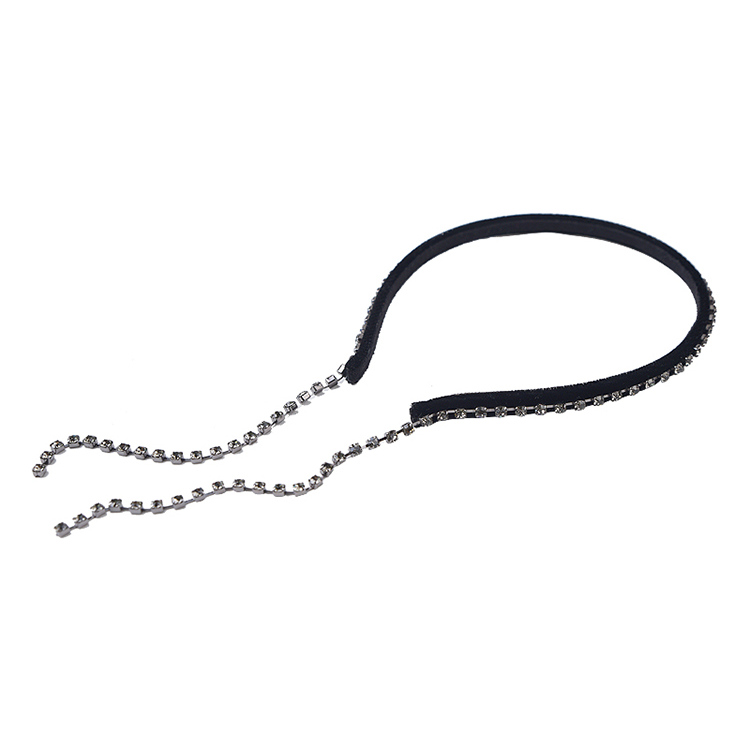 韩国发饰超闪水钻流苏发箍复古简约后挂式头箍细边丝绒外出发卡