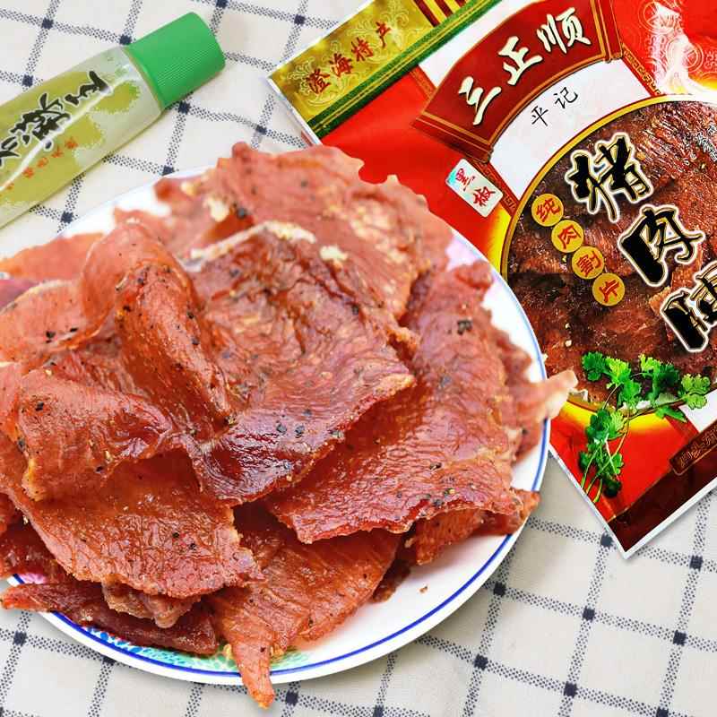 潮汕特产 三正顺猪肉脯原味黑椒烤肉干纯肉大片休闲零食小吃 包邮