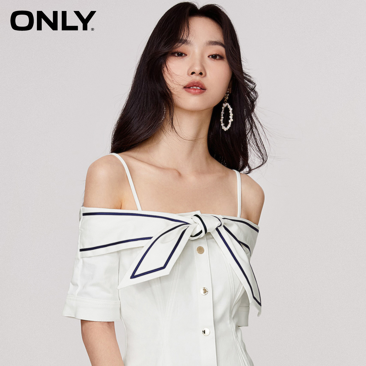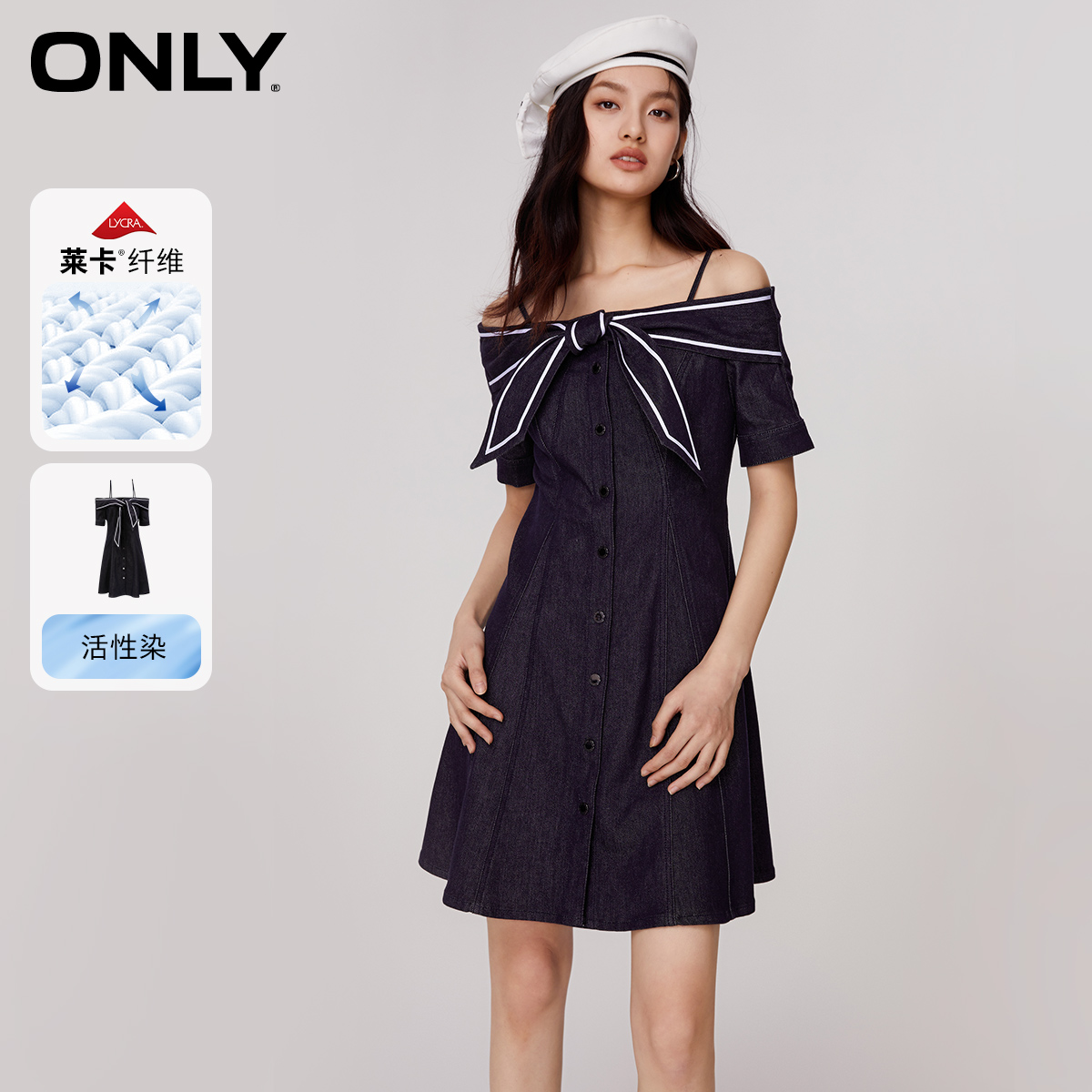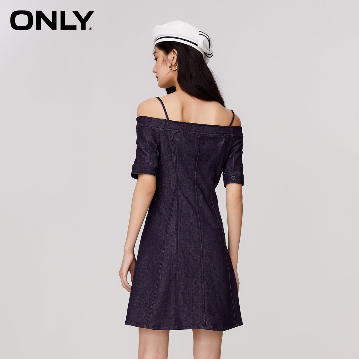 【ONLY奥莱清仓】秋季时尚修身一字肩短款牛仔连衣裙女