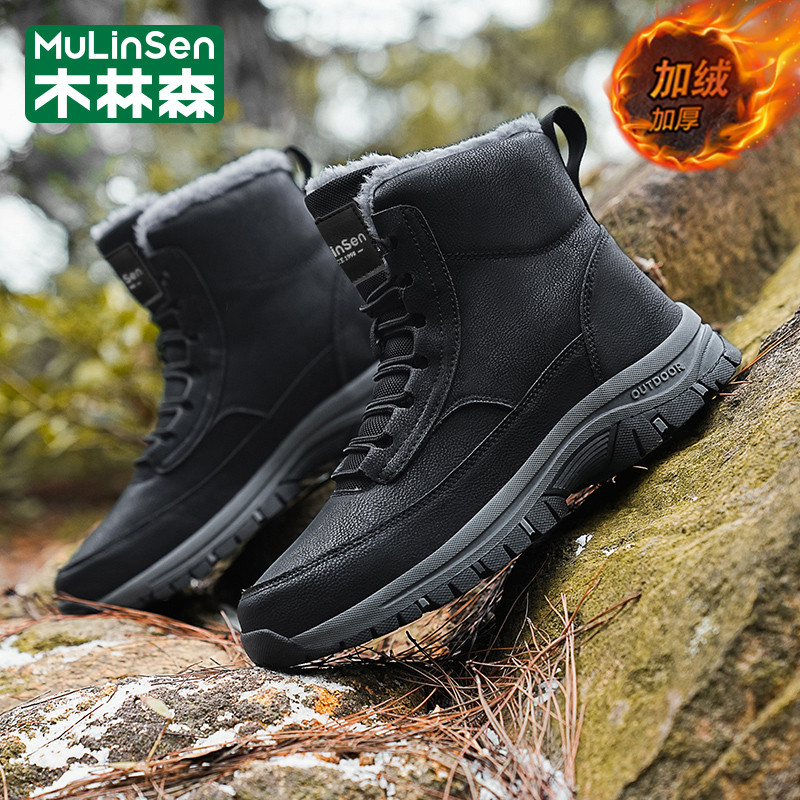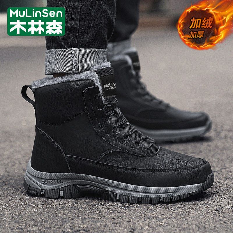 木林森棉鞋男款冬季加绒加厚雪地靴高帮中年爸爸马丁工装大码皮鞋