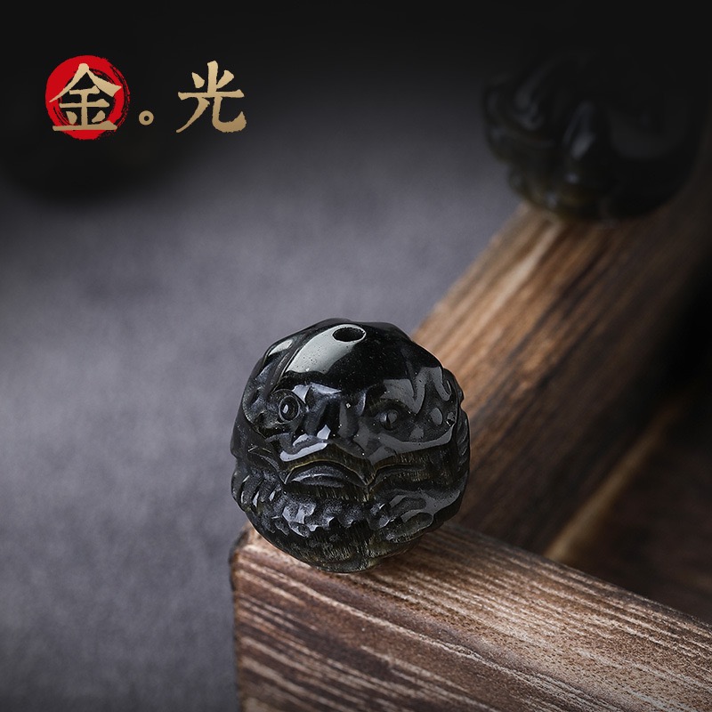 天然金曜石十二生肖本命年属相雕刻黑曜石手diy配件手链手串配饰