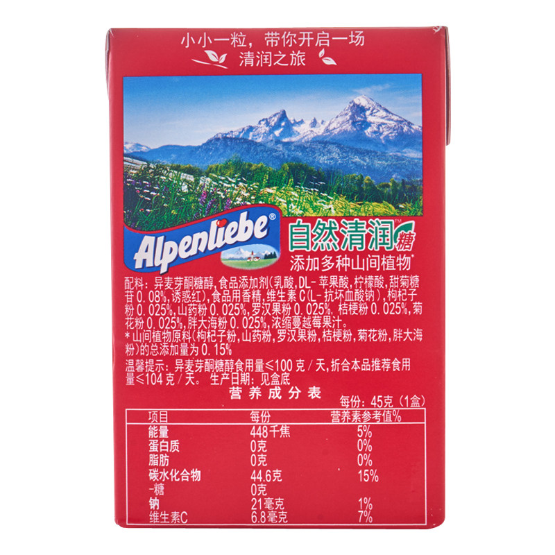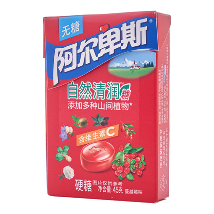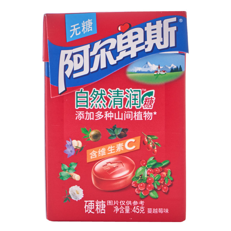 阿尔卑斯自然清润糖蔓越莓味45克/盒糖果硬糖胖大海无糖能量植物
