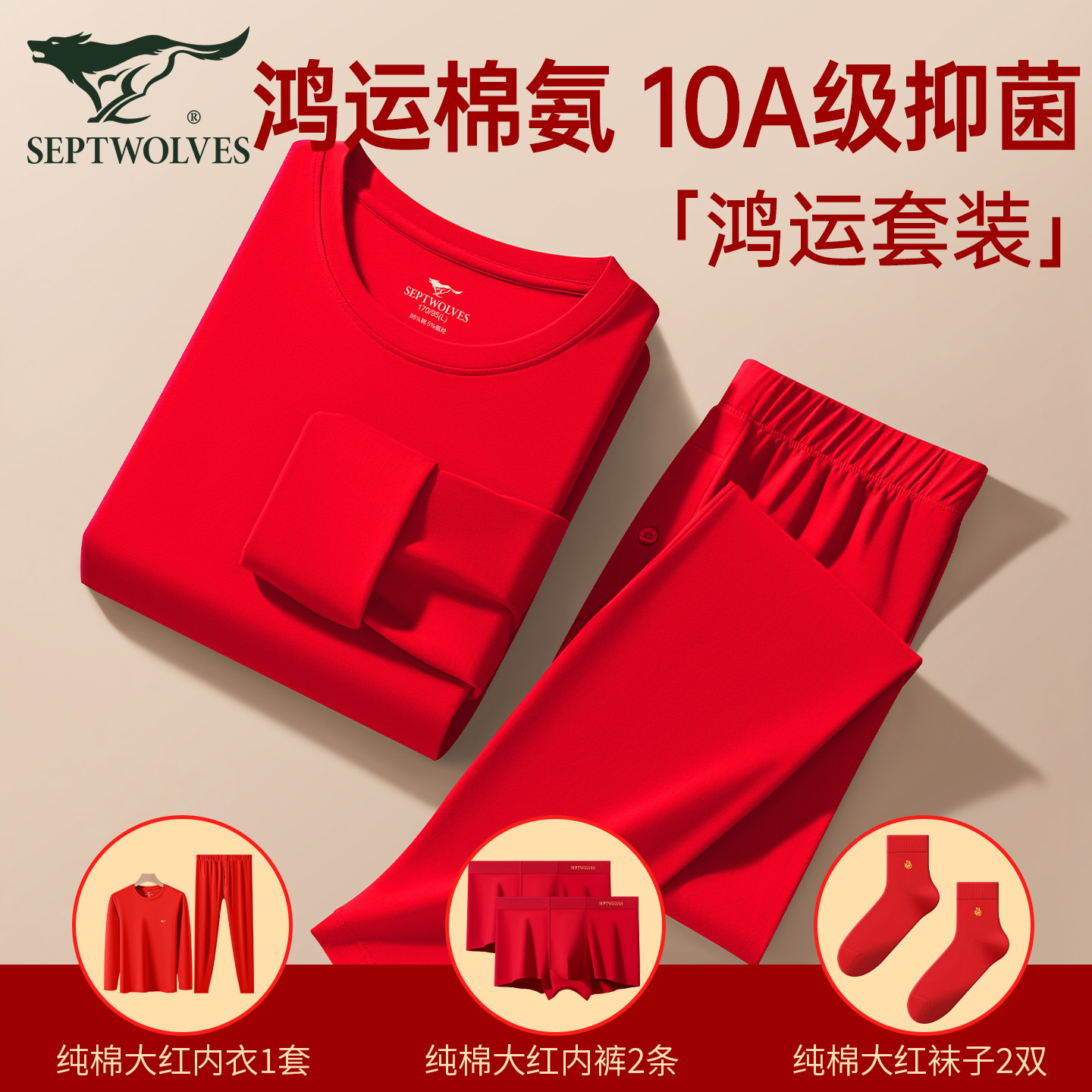 七匹狼本命年属马年衣服男士保暖内衣套装大红色结婚纯棉秋衣秋裤
