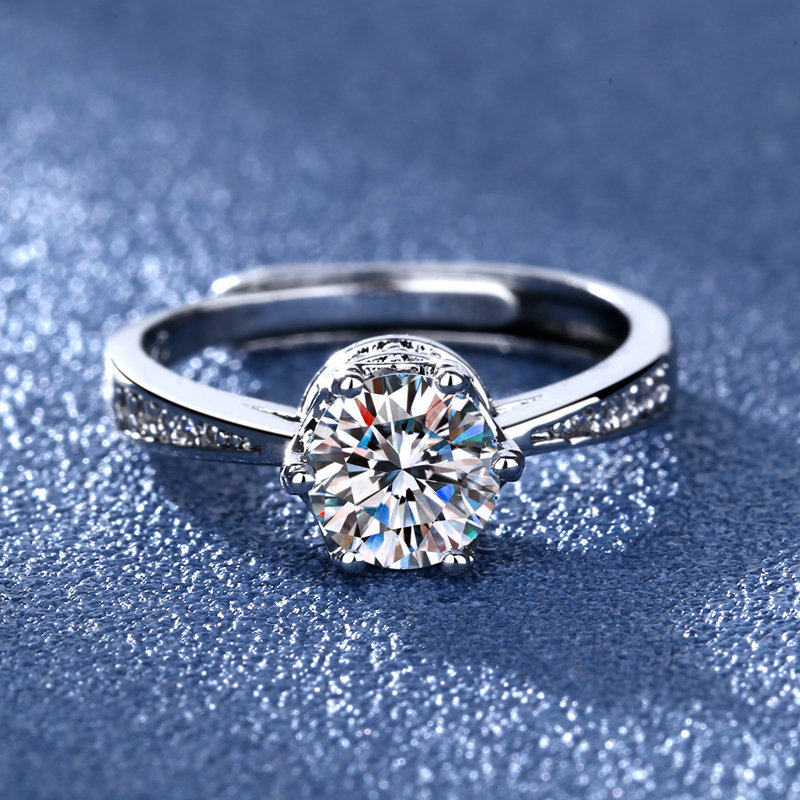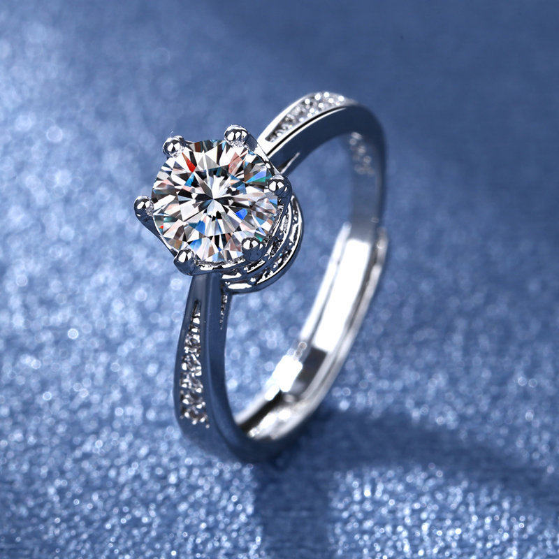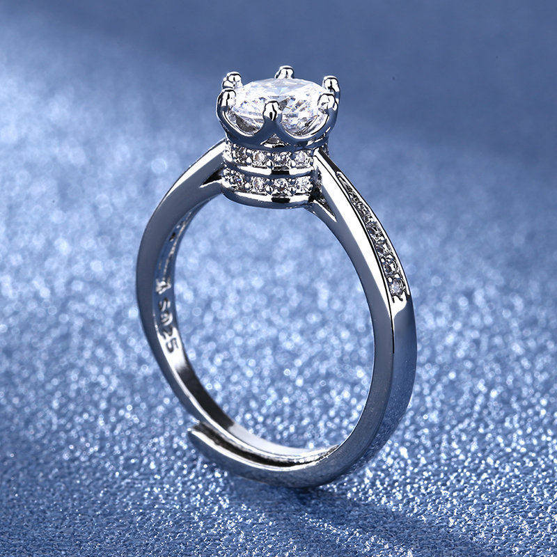 欧美风公主皇冠硞石镀925纯银戒指少女简约甜美求婚结婚镶钻戒指