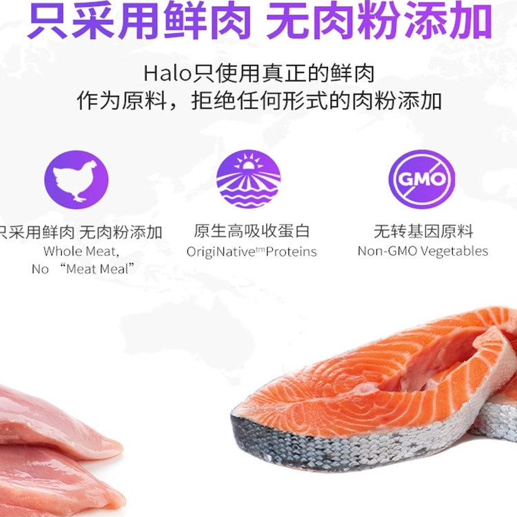 Halo自然光环猫粮健美体态成猫粮10磅调肠胃无谷鸡肉鱼肉美国进口