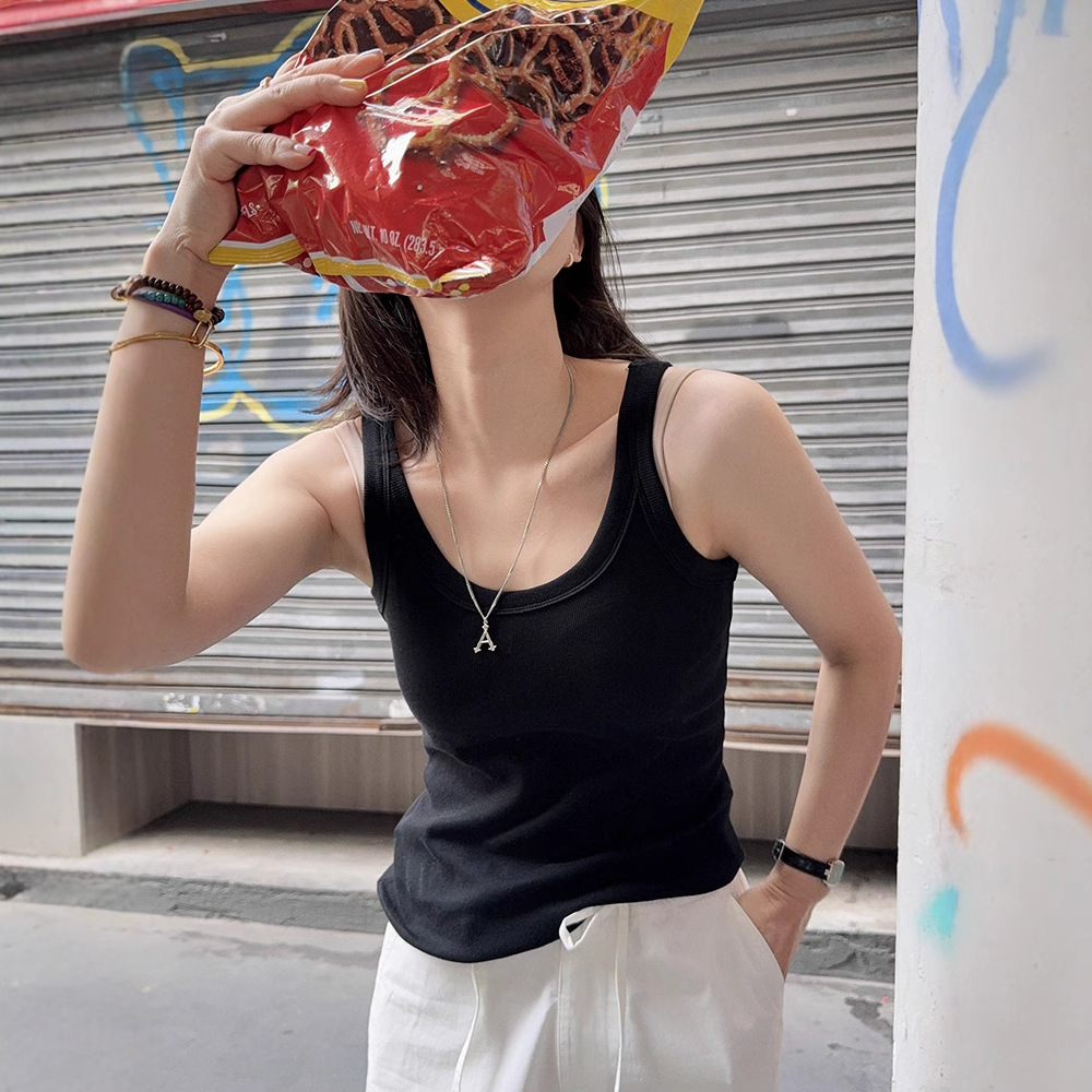 工字宽肩带吊带背心女夏季外穿打底内搭防走光遮副乳无袖白色