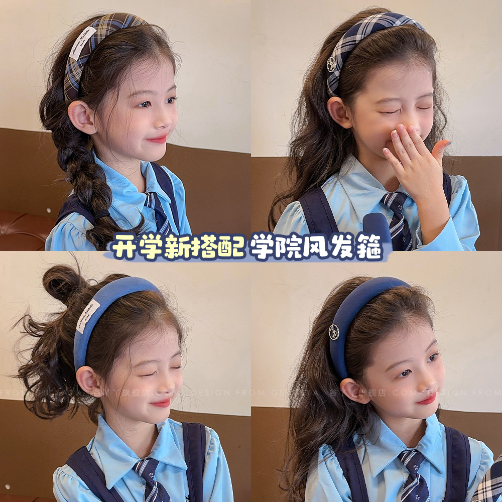儿童学院风格纹发箍百搭高级感小女孩气质高颅顶发饰宽边头箍发卡