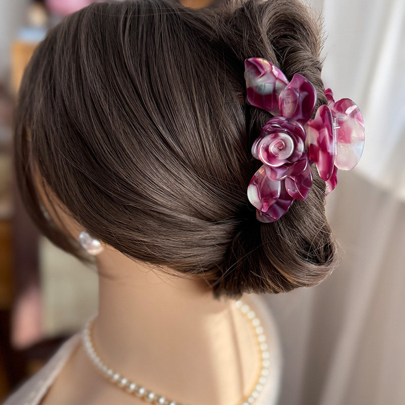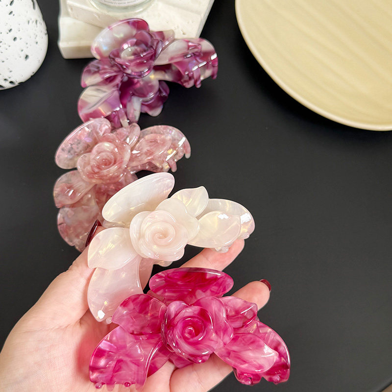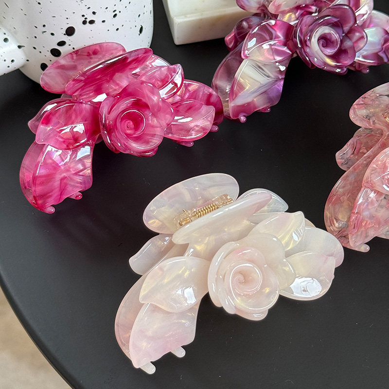 【温柔】豆沙粉色玫瑰头饰发夹后脑勺醋酸抓夹气质高级感鲨鱼夹女