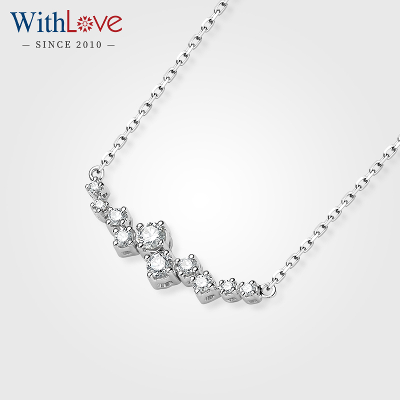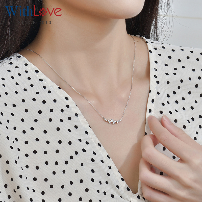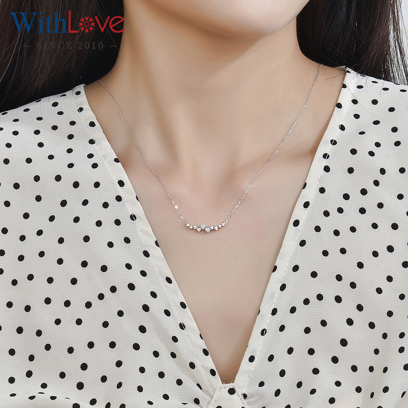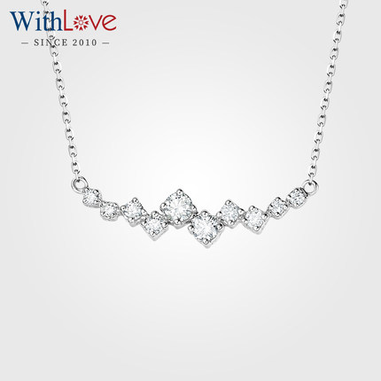 WithLove 白18K金Pt铂金群镶钻石项链锁骨链真钻轻奢时尚送女友
