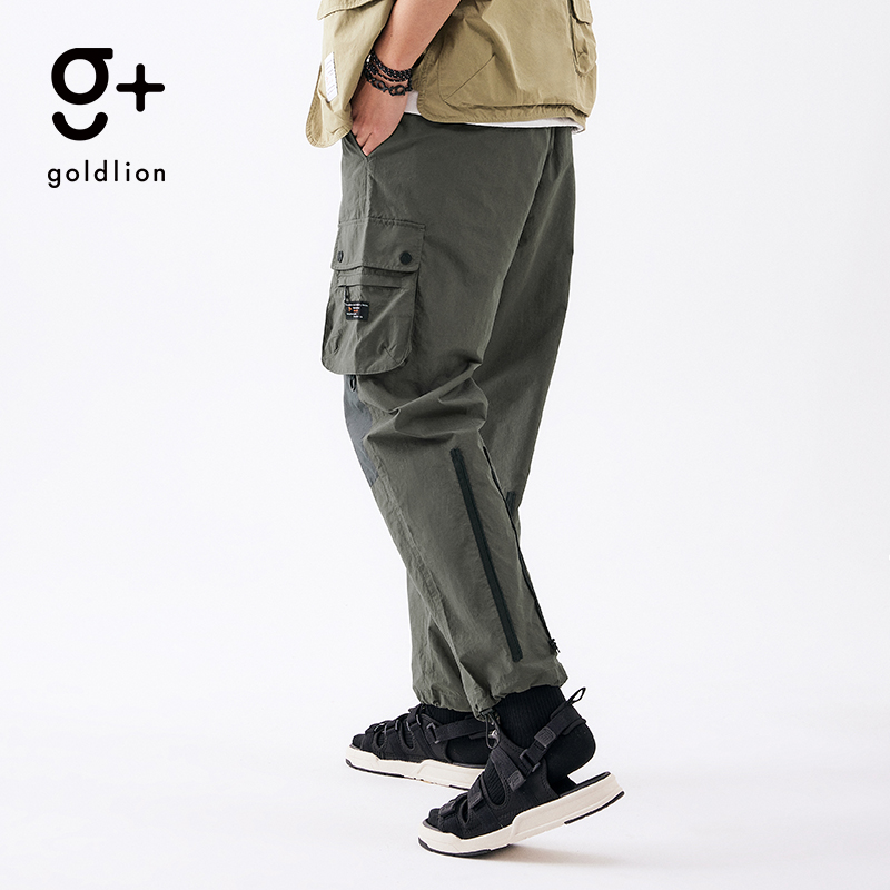 金利来 g+山系户外速干面料露营撞色大口袋长裤男士直筒休闲裤