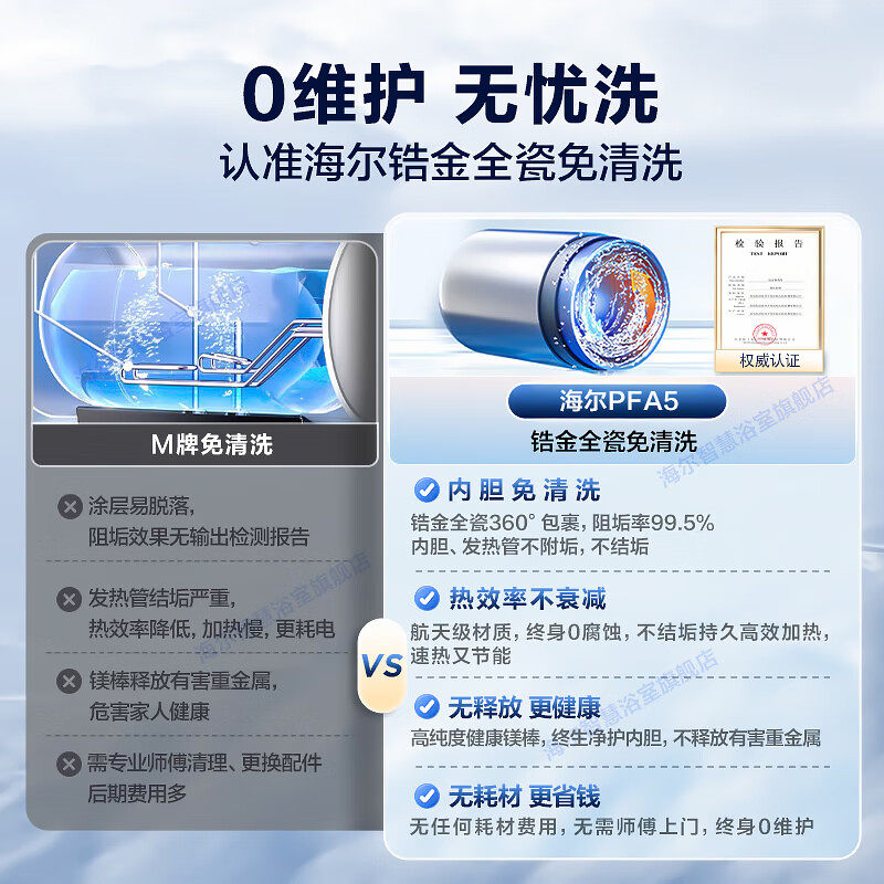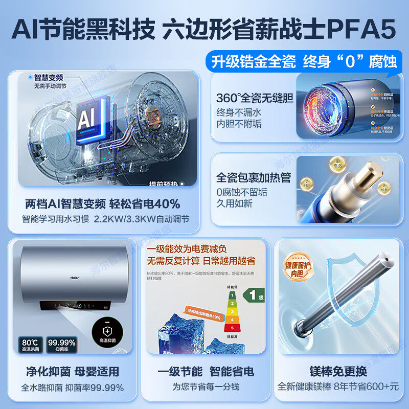 国补海尔电热水器60L/80升家用洗澡储水式一级能效变频卫生间PFA5