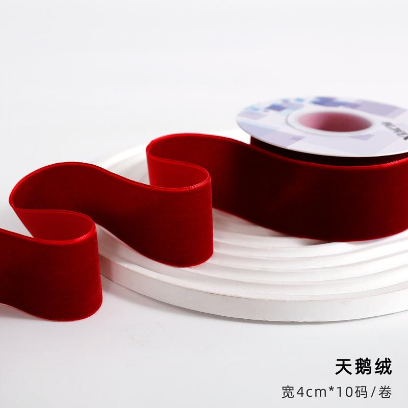 2025圣诞红色丝绒带蝴蝶结丝带花束包装丝带花艺材料花店装饰花带