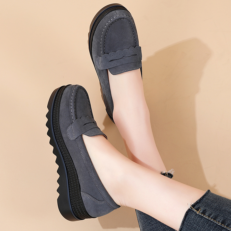 2025新款一脚蹬厚底乐福鞋女坡跟松糕休闲鞋大码真皮妈妈鞋不累脚