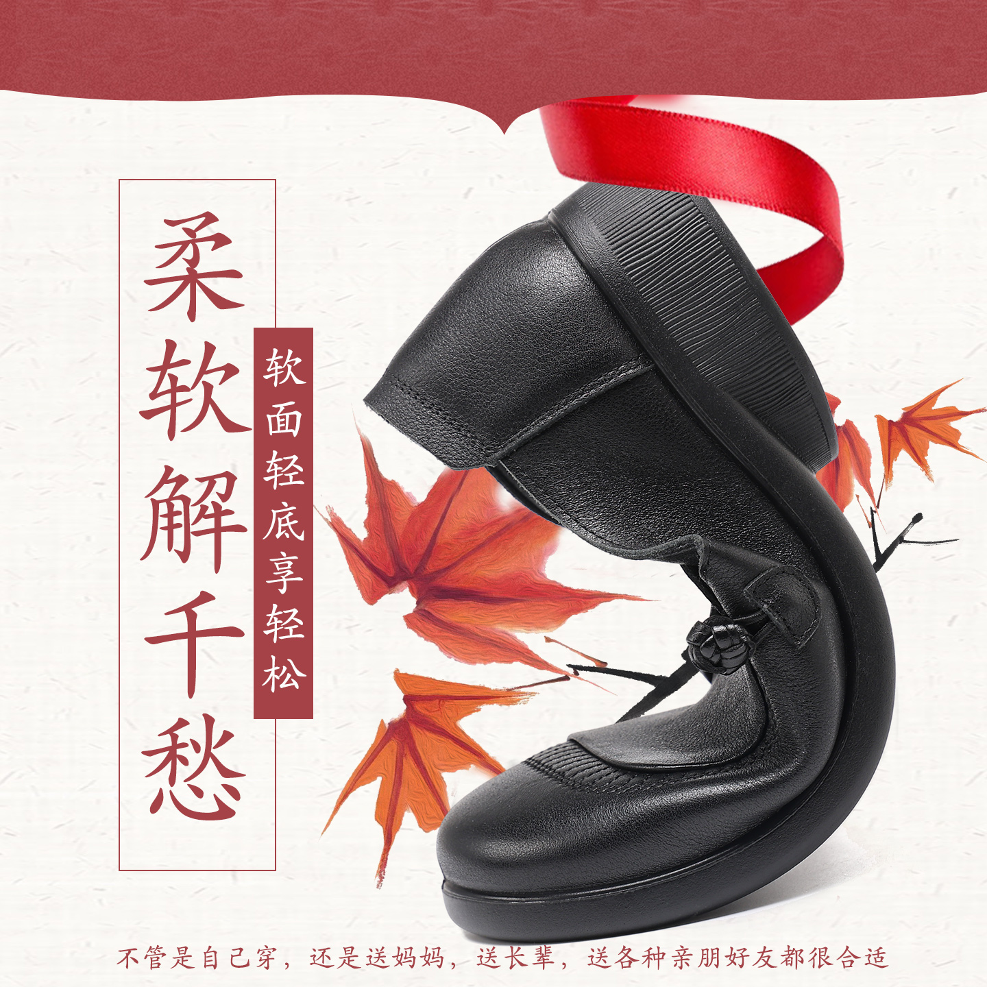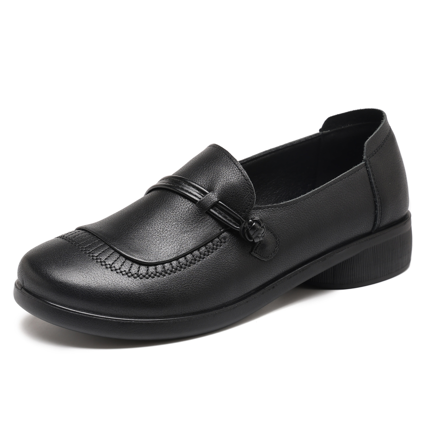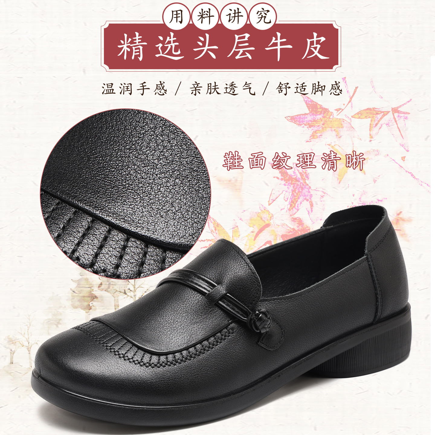 41宽松圆头大码女鞋42中年妈妈软底真皮鞋低跟平底防滑婆婆鞋子43