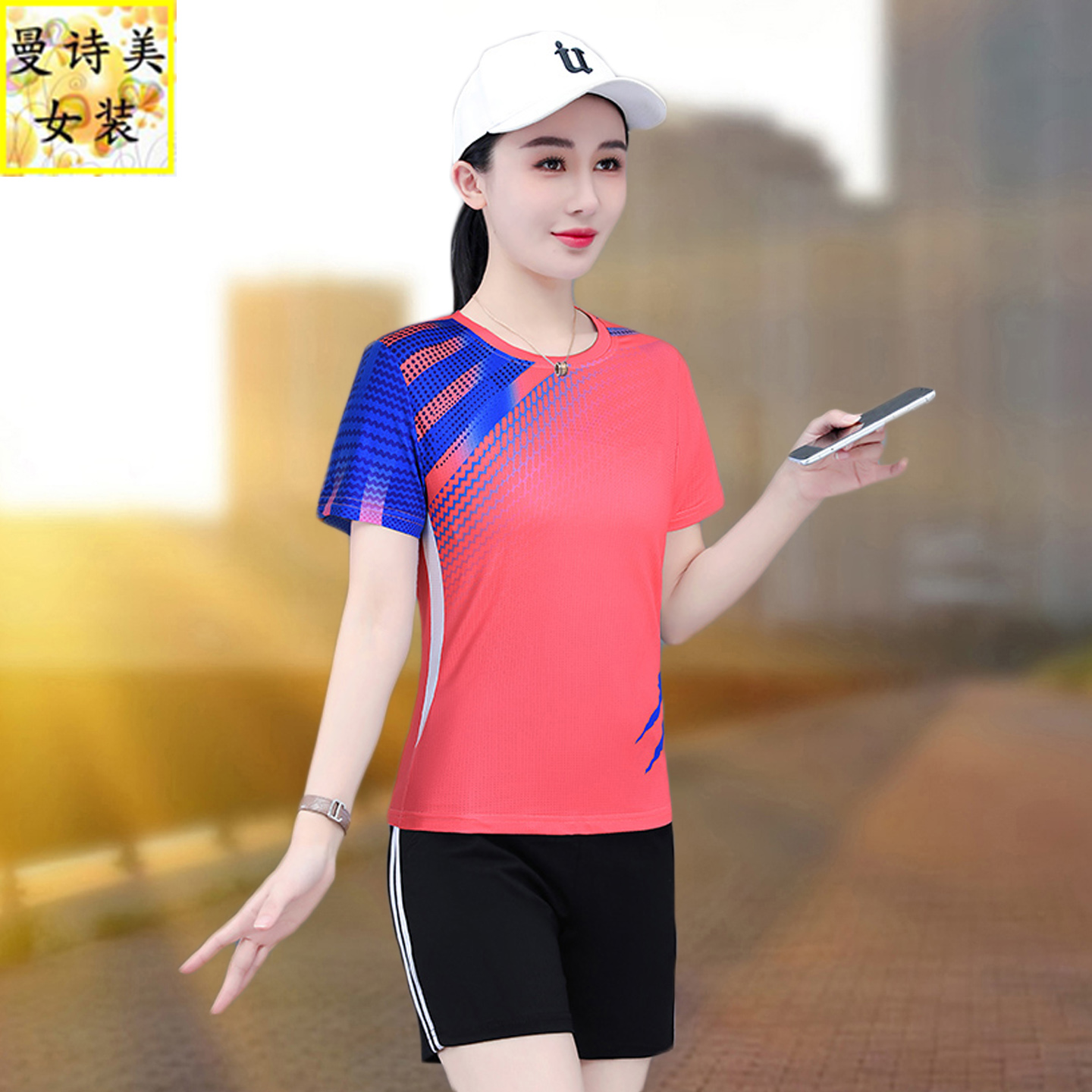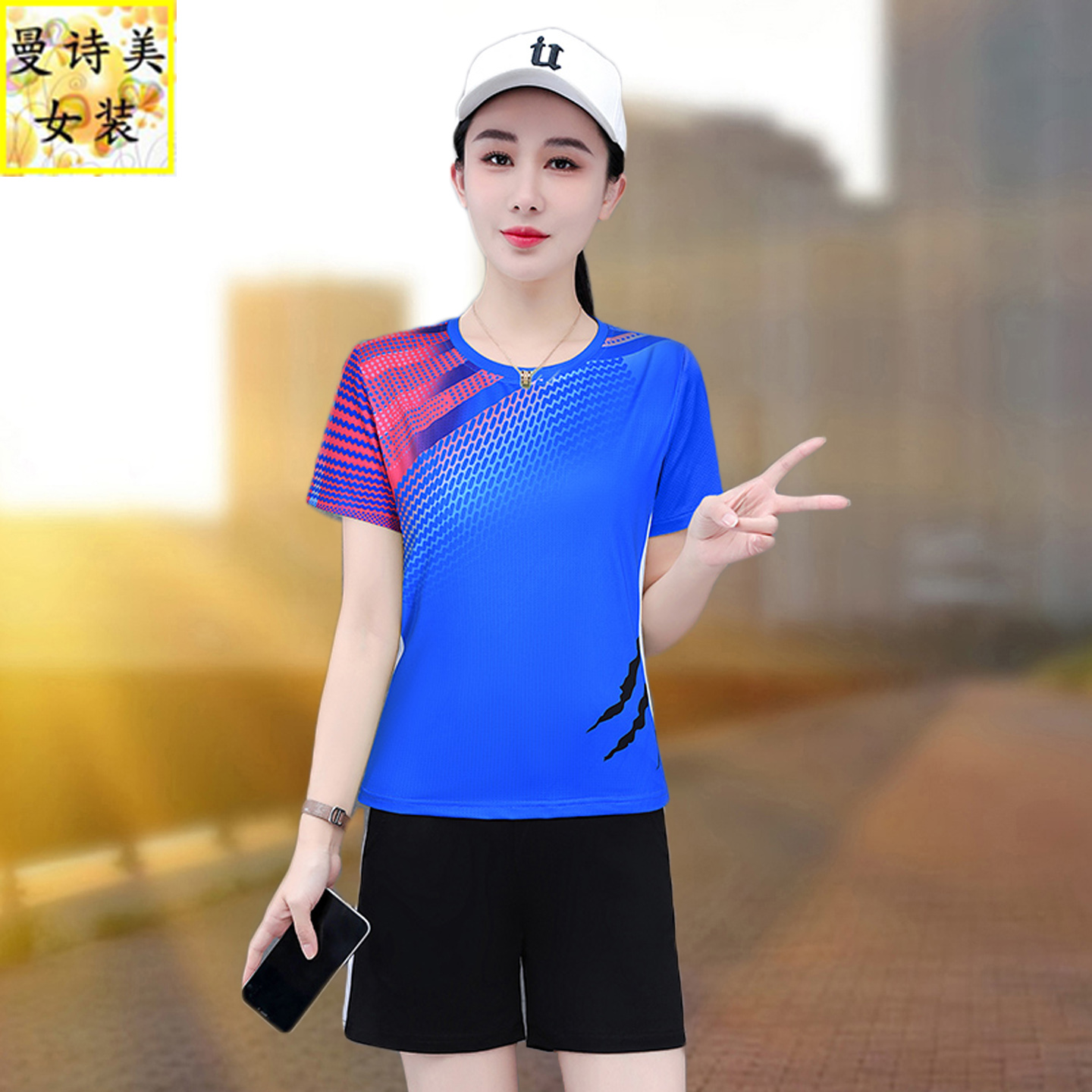 冰丝速干运动套装女夏季薄款2025新款羽毛球服短袖短裤跑步两件套