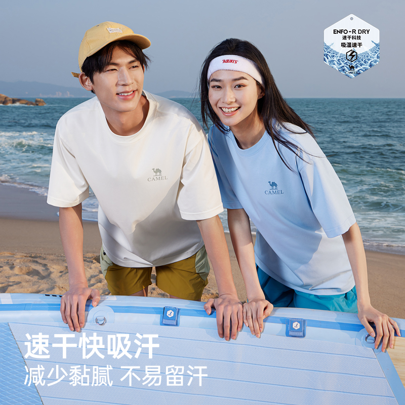 骆驼男装速干短袖t恤男夏季2025新款圆领宽松印花半袖体恤上衣男