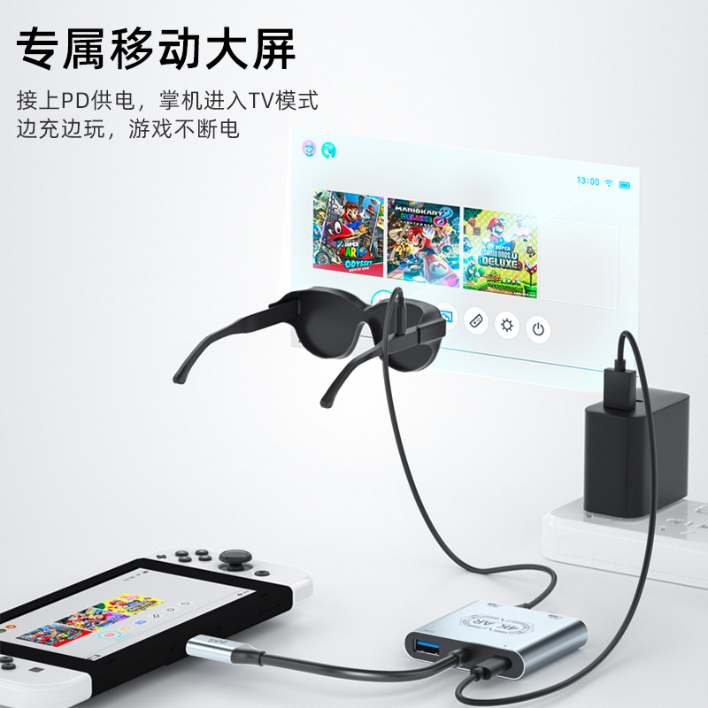 AR眼镜转换器PD充电全功能typec一分二拓展坞ROG掌机steam任天堂switch视频扩展坞适用雷鸟rokid/xreal投屏vr