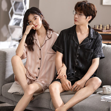 情侣睡衣夏季冰丝短袖带胸垫薄款2025年新款超火家居服一男一女