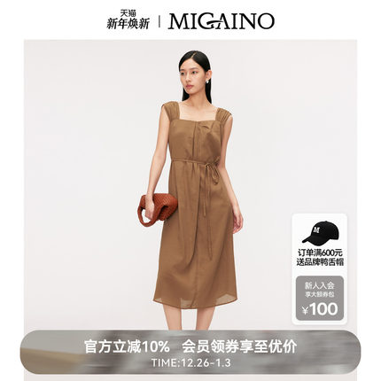 Migaino曼娅奴女装夏季新款优雅复古时尚背带连衣裙MO22DE098