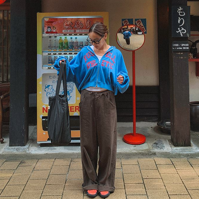 Cmy korea 韩国东大门代购女装 双向拉链设计字母连帽配色卫衣