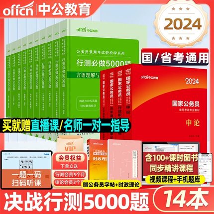 中公教育国考决战行测5000题2024年国考公务员考试2023申论100题公考历年真题考公教材判断推理言语理解表达资料分析必做无尘粉笔