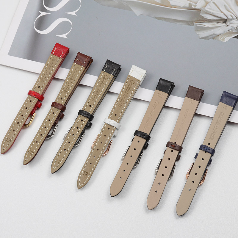适配女聚利时飞亚达阿玛尼斐乐dw小绿表小金表小众真皮手表带10mm