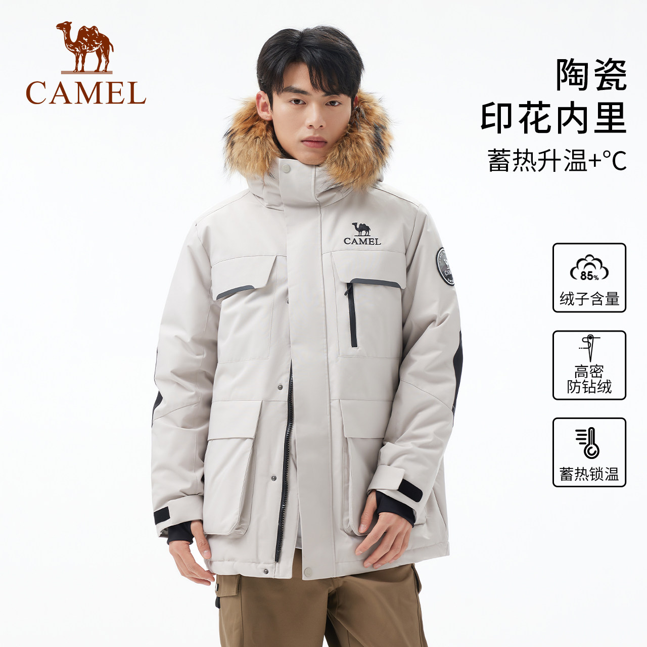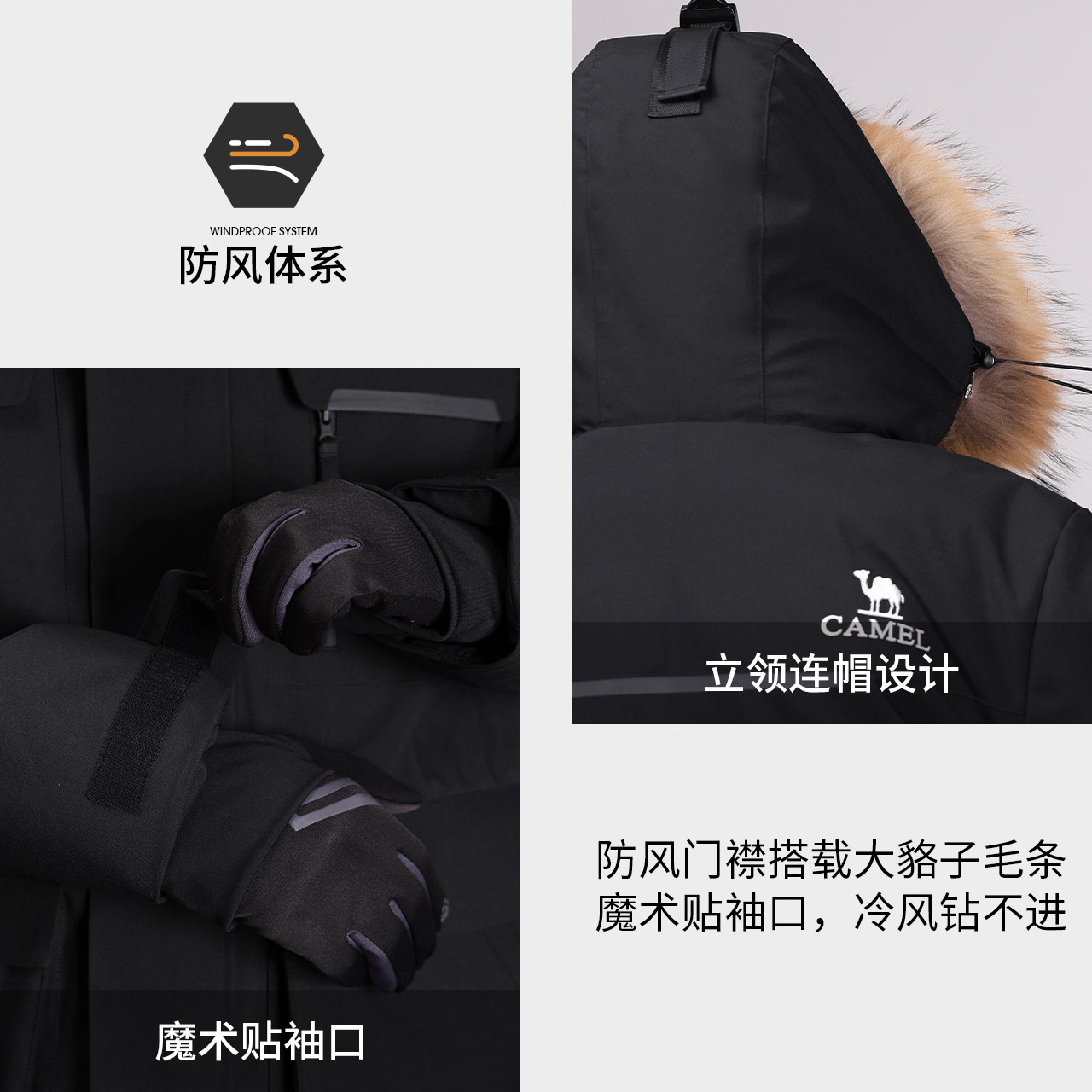 【鹅绒】骆驼户外羽绒服冬季新款女款男款三防工装加厚保暖派克服