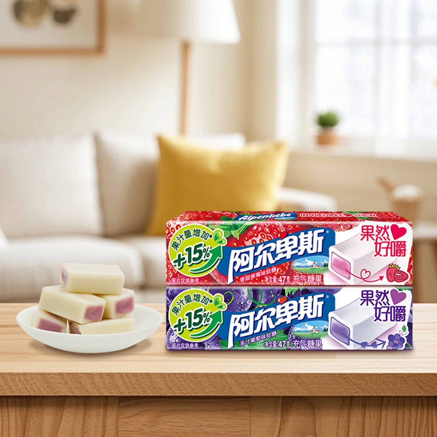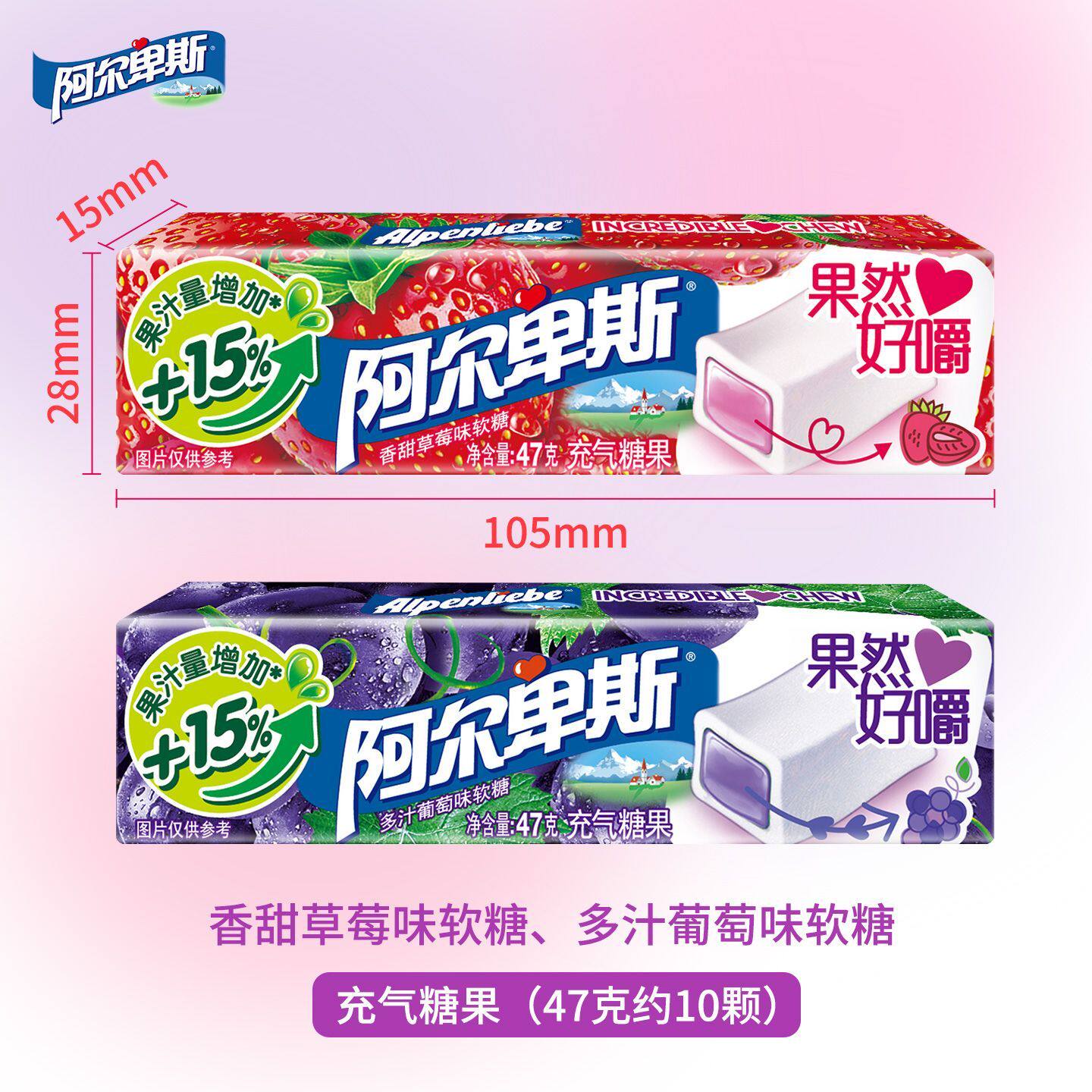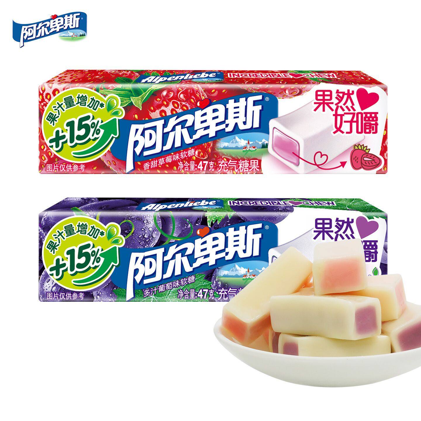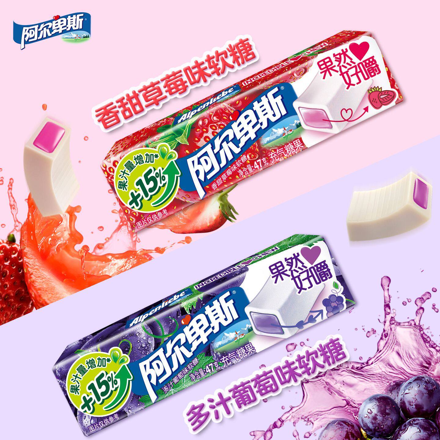 阿尔卑斯果然好嚼百香果奇异果充气软糖47克添加果汁奇亚籽