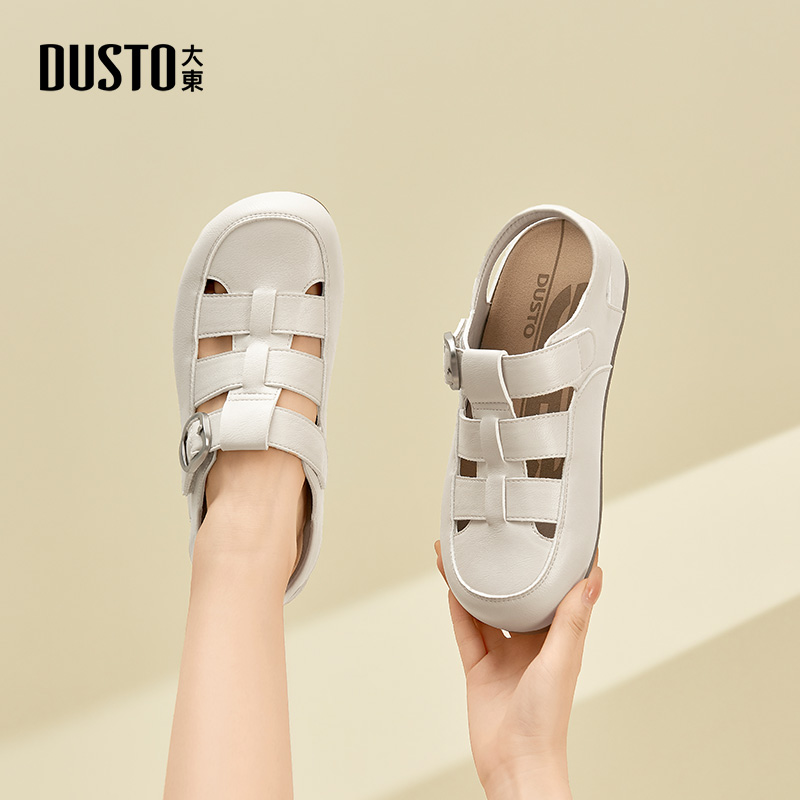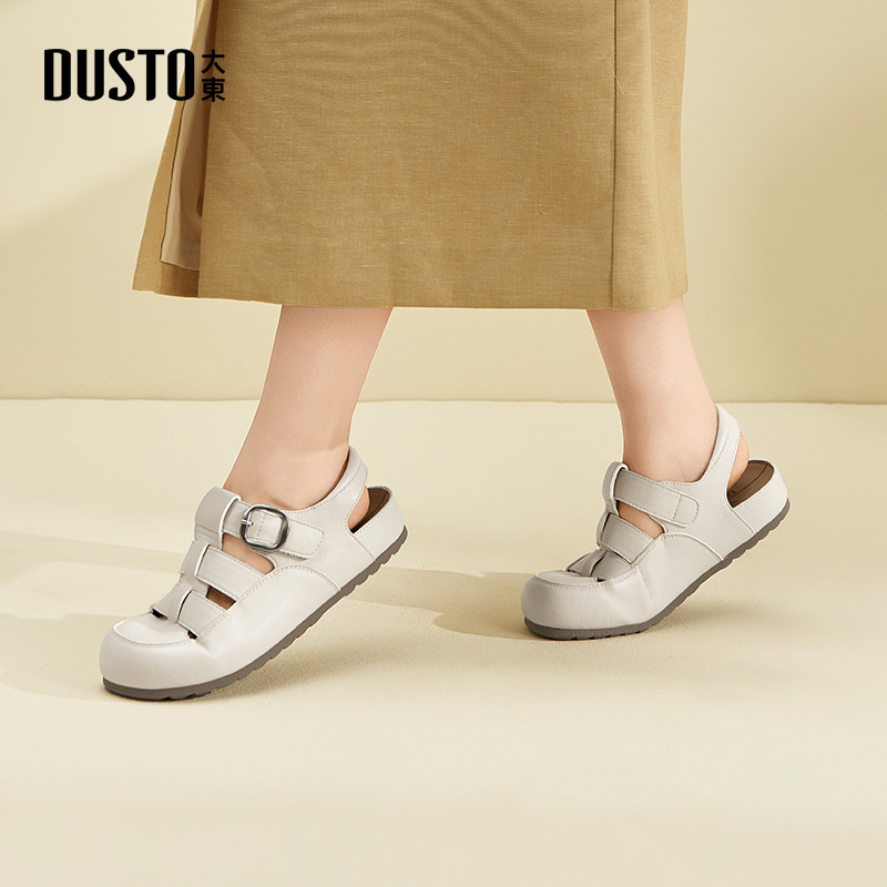 大东后空单鞋女鞋2026春季新款平底低跟魔术贴圆头结构变化