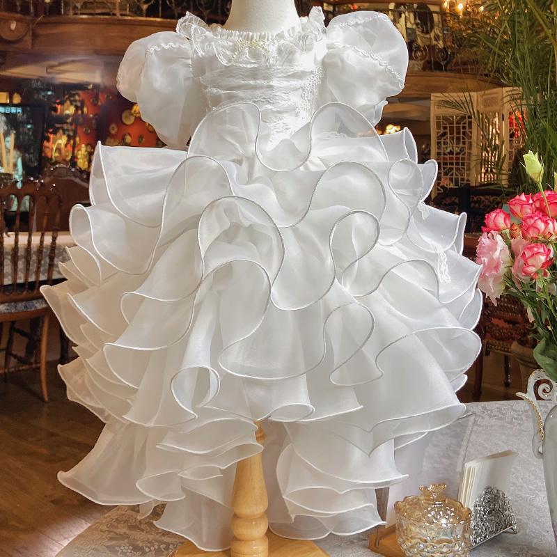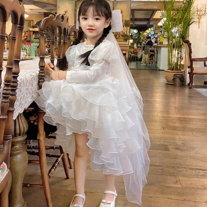 女童花嫁生日宴公主裙短袖花童礼服白色蛋糕裙夏儿童洛丽塔连衣裙