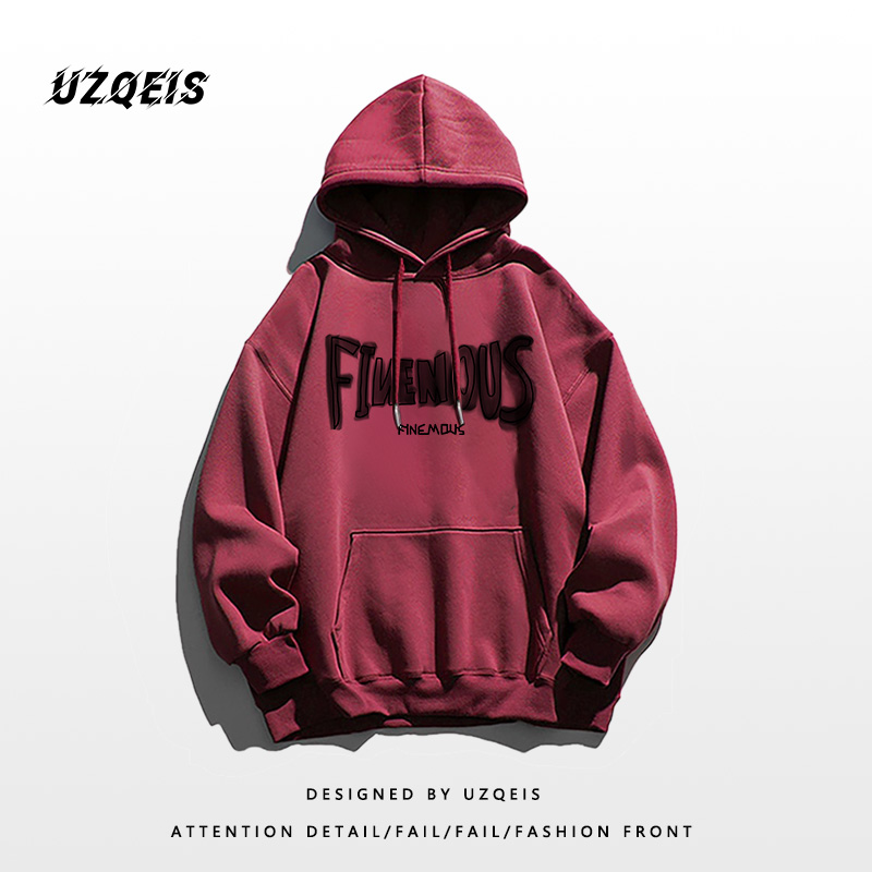 秋季酒红色高街重磅连帽卫衣男款上衣美式外套情侣潮牌宽松街头潮