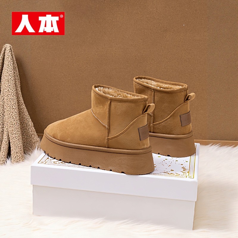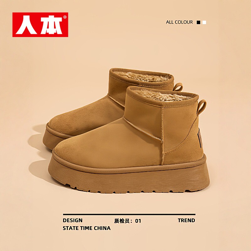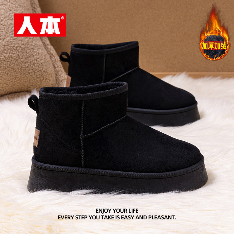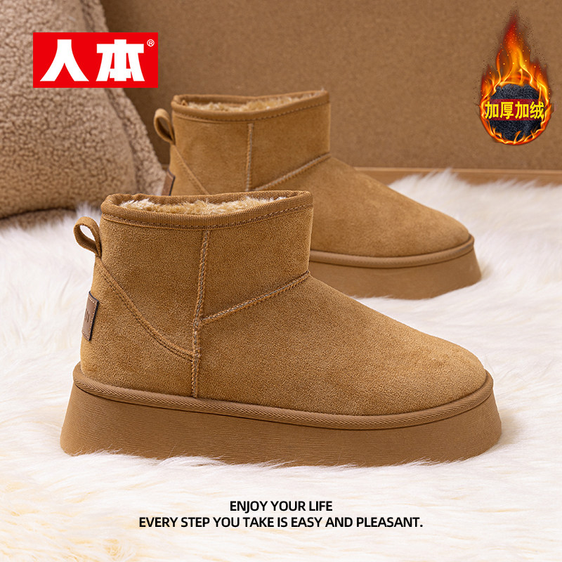 人本厚底雪地靴女款2025新款冬季女鞋东北加绒加厚保暖增高棉鞋