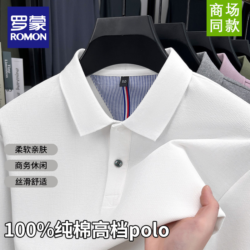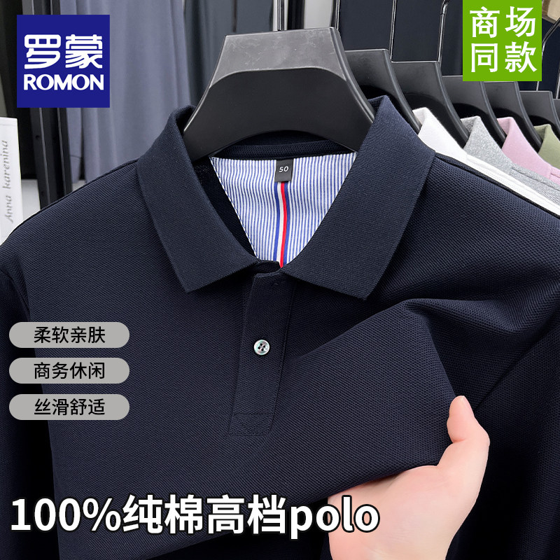 罗蒙100%纯棉长袖t恤春季新男士翻领宽松高端polo衫百搭打底衫男