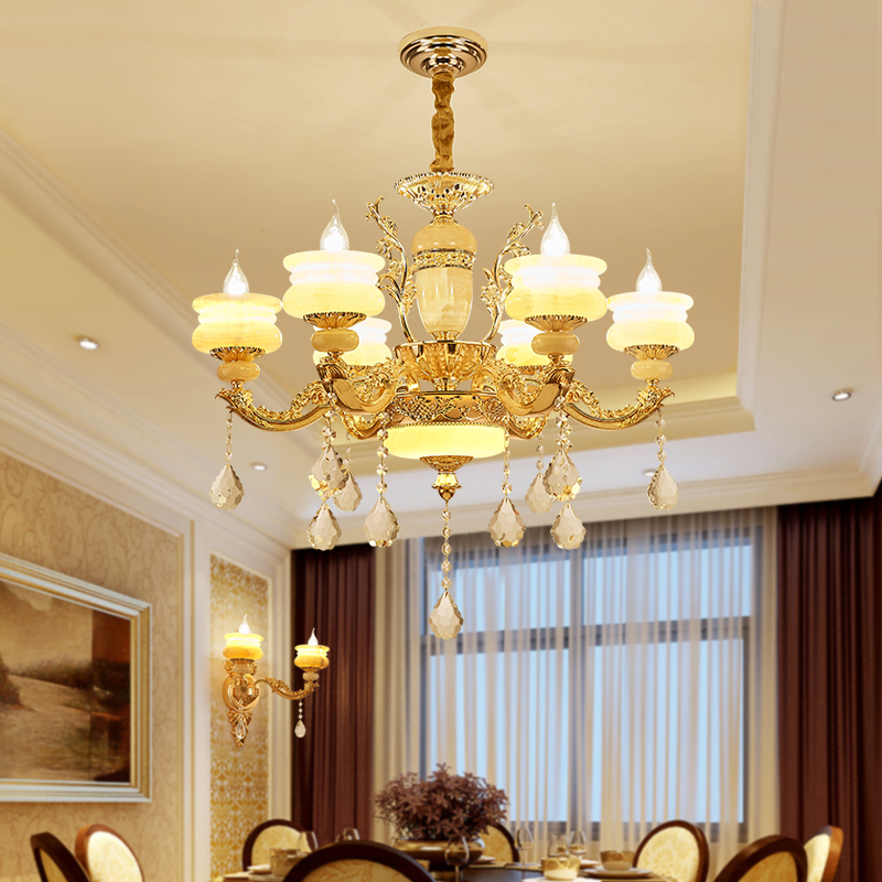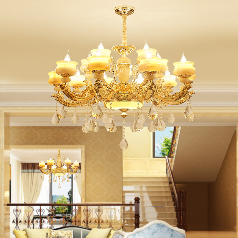 欧式别墅玉石水晶灯客厅蜡烛灯