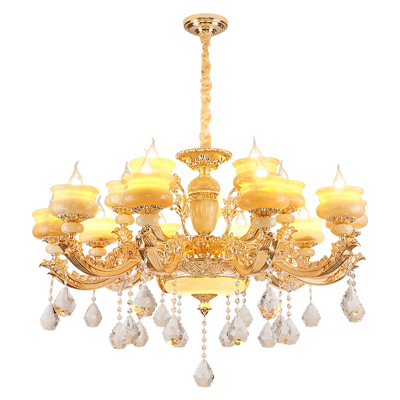 欧式黄玉吊灯餐厅客厅卧室锌合金蜡烛水晶灯别墅奢华大气云石灯具