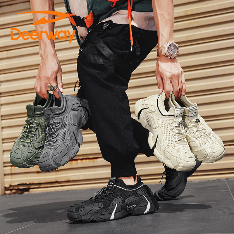 德尔惠休闲男鞋秋季百搭新款一脚蹬懒人鞋网面登山鞋防滑运动鞋男