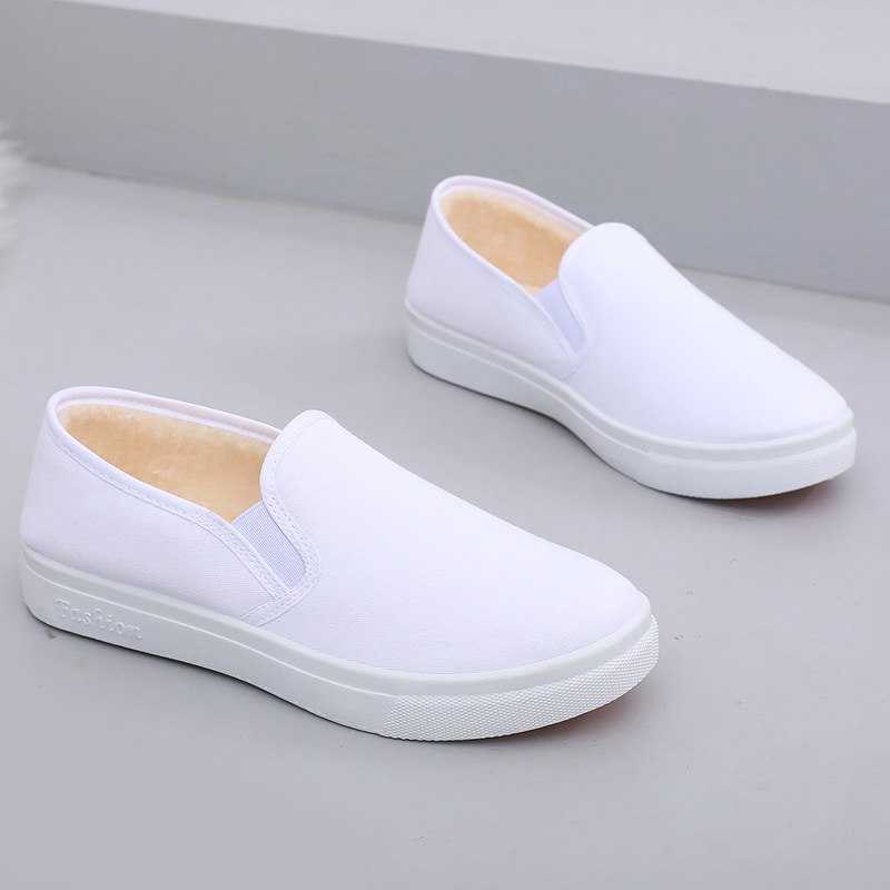 小白鞋轻便帆布鞋美容护士鞋防滑舒适加绒保暖棉鞋男女白色工作鞋