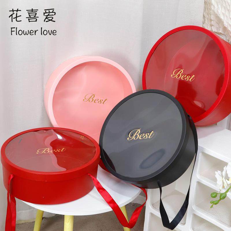 花喜爱 开窗圆形礼盒塑料防水鲜花盒花束包装盒手工diy花艺材料