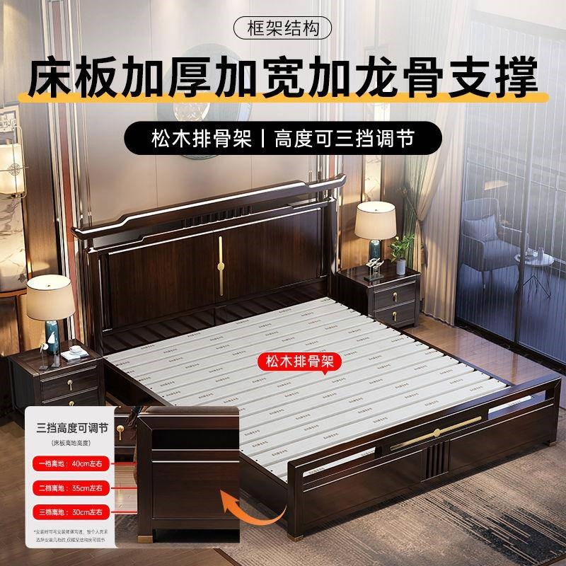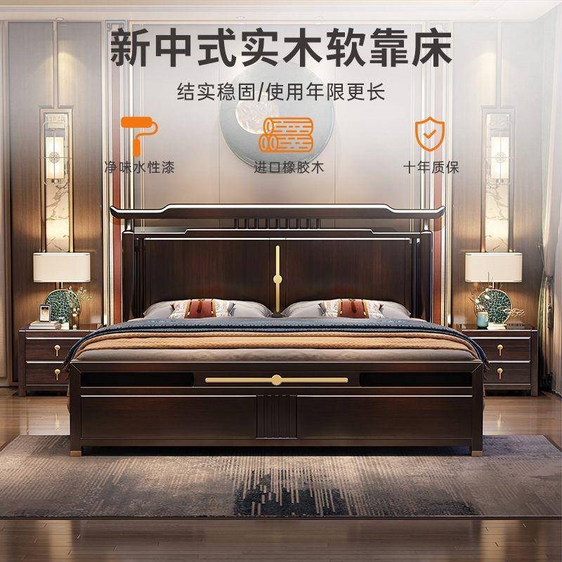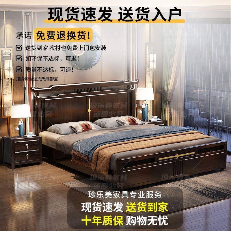 珍乐美新中式实木床1.8米大床1.5米床现代简约主卧婚床中式储物床