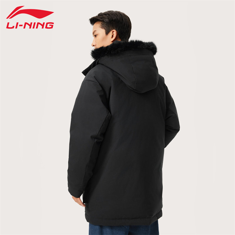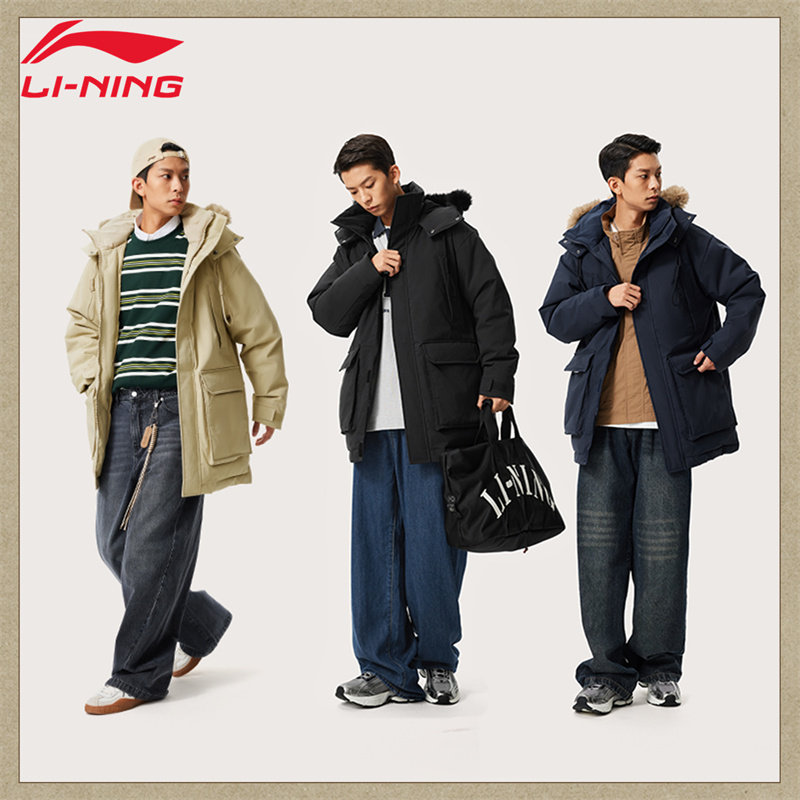 李宁羽绒服男款冬季中长款防风保暖时尚潮流休闲复古连帽羽绒外套