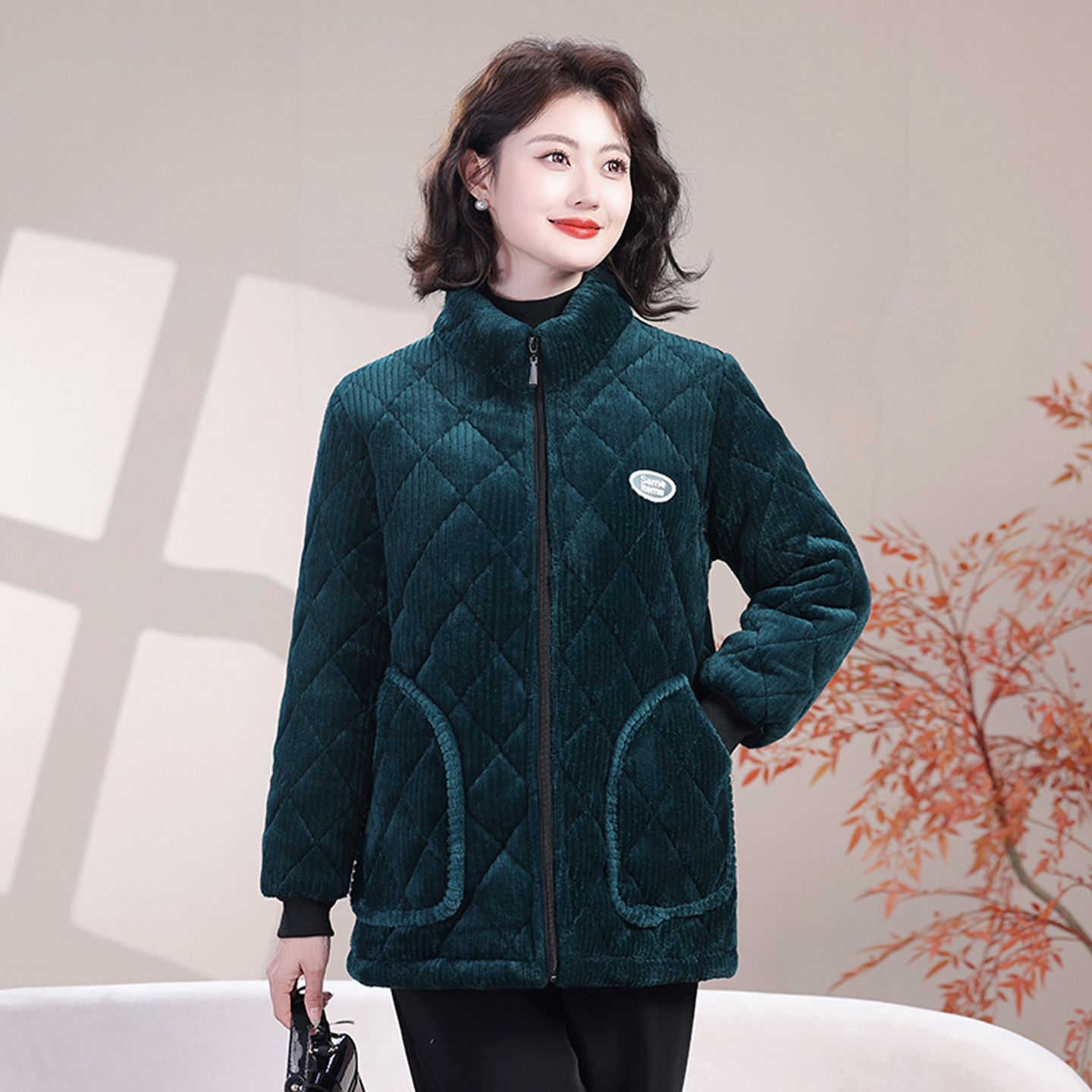 加绒加厚冬季保暖棉罩衣女装外穿小个子妈妈棉袄耐脏防寒短款棉服