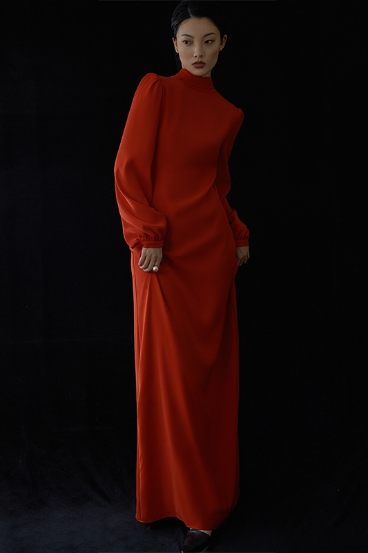 红色敬酒服新娘结婚缎面长袖宴会年会主持显瘦晚礼服裙女平时可穿