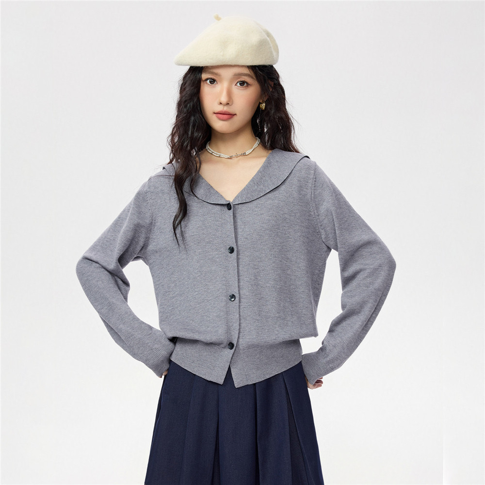 佐丹奴针织衫女春季新款花纱开衫混色毛衣海军领针织上衣13355762